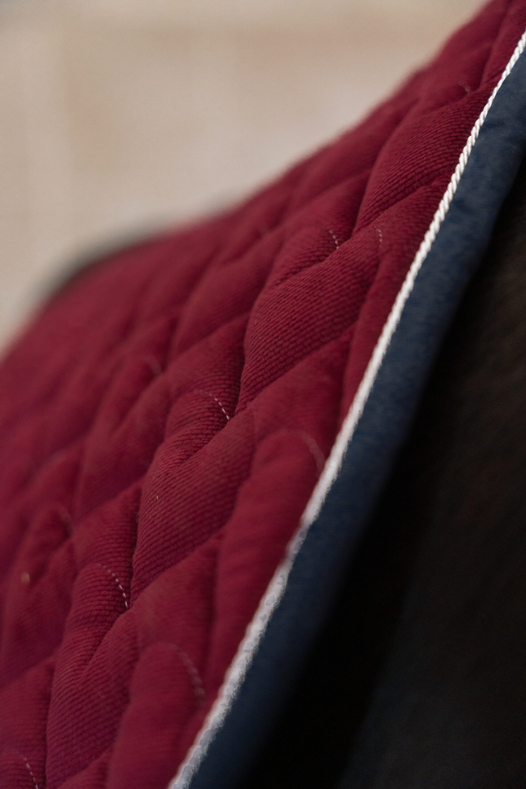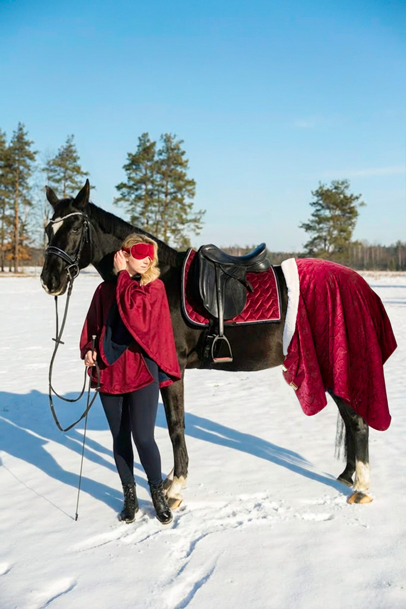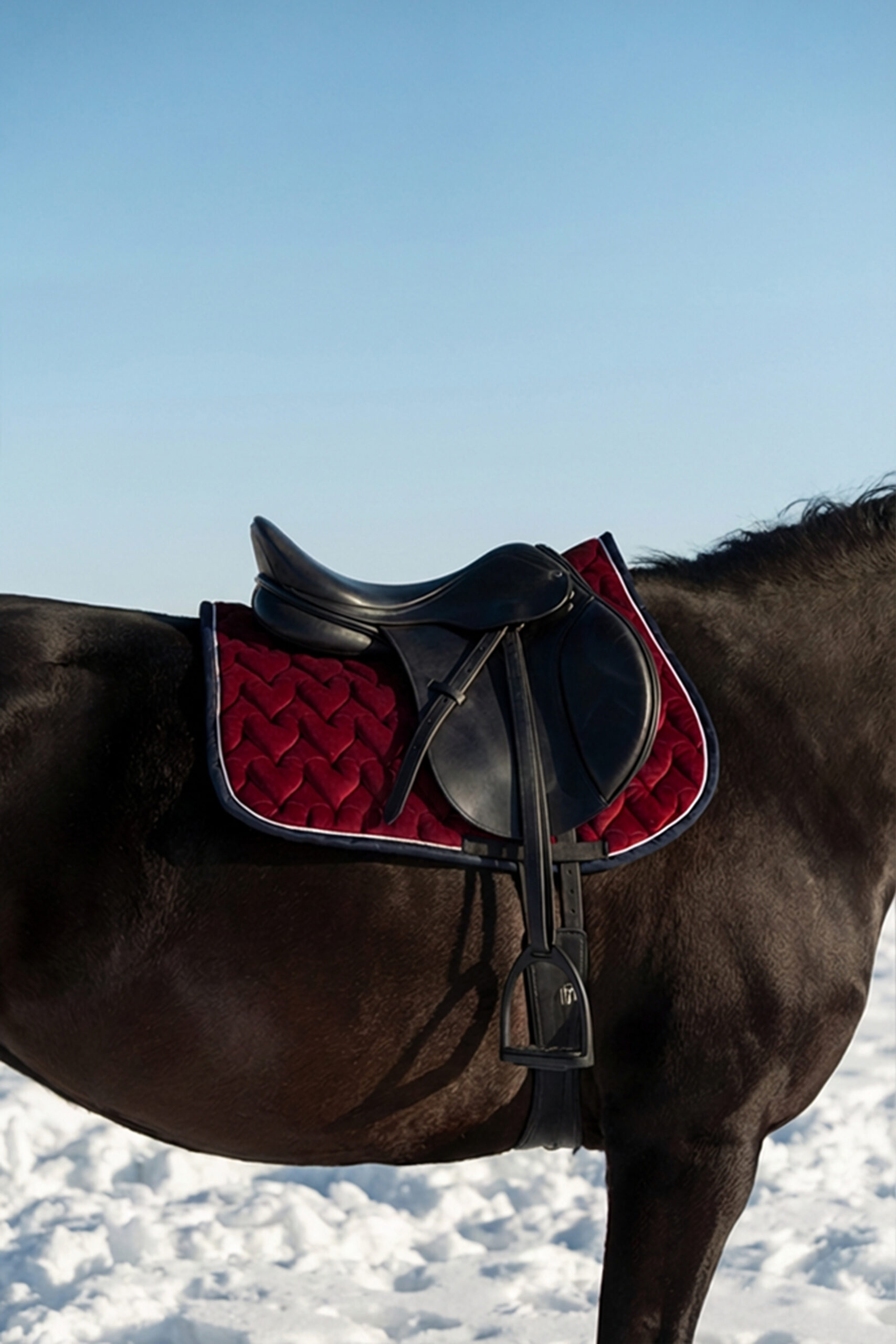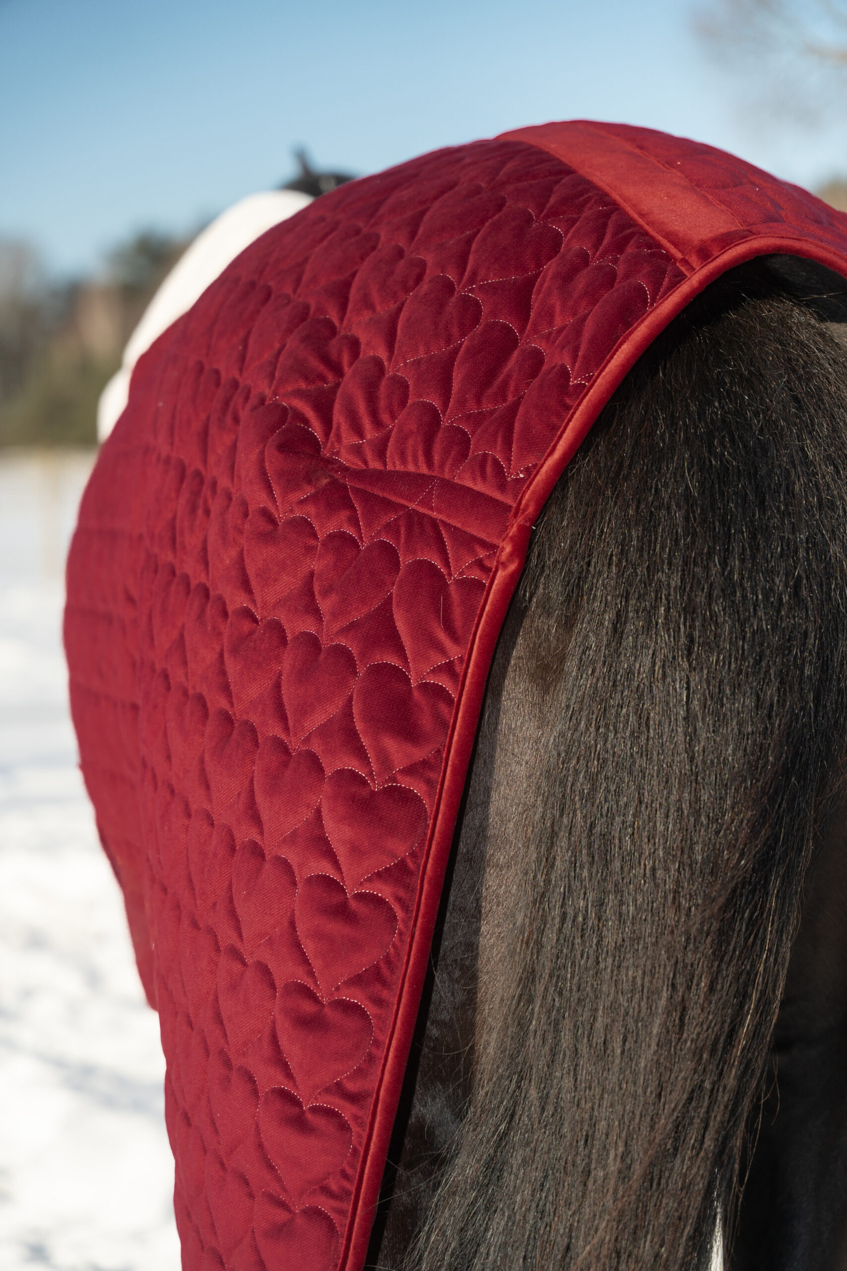 Pozwól swojemu koniowi poczuć komfort i luksus, na jaki zasługuje. HeartBeat to bordowa derka stajenna, która łączy elegancję najwyższej klasy z funkcjonalnością stworzoną z myślą o codziennym użytkowaniu w stajni. Pikowanie w serca w połączeniu z miękkim welvetem o delikatnej strukturze cegiełek tworzy subtelny, a zarazem wyrafinowany efekt, który wyróżnia Twój koń w każdej stajni.
