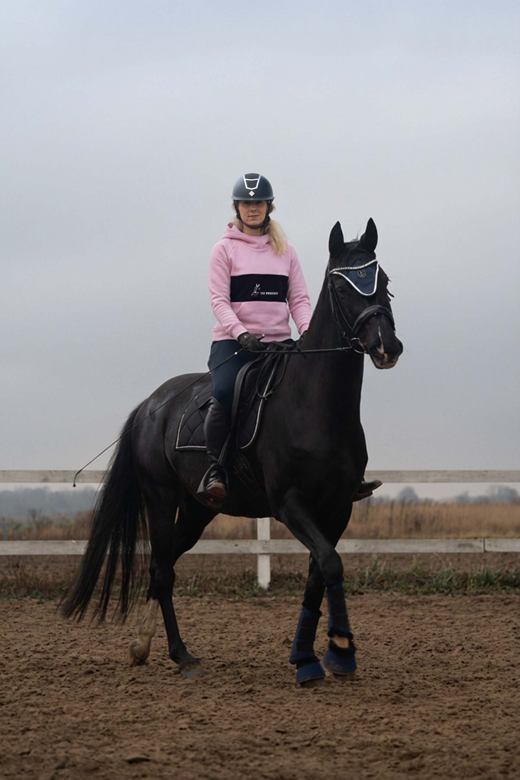 Na froncie bluzy znajduje się elegancki, brokatowy pasek z wyhaftowanym logo marki „DO PRZODU”, który nadaje jej wyjątkowego charakteru i podkreśla nowoczesny styl. To detal, który wyróżnia bluzę i sprawia, że świetnie komponuje się zarówno ze sportowymi, jak i casualowymi outfitami.